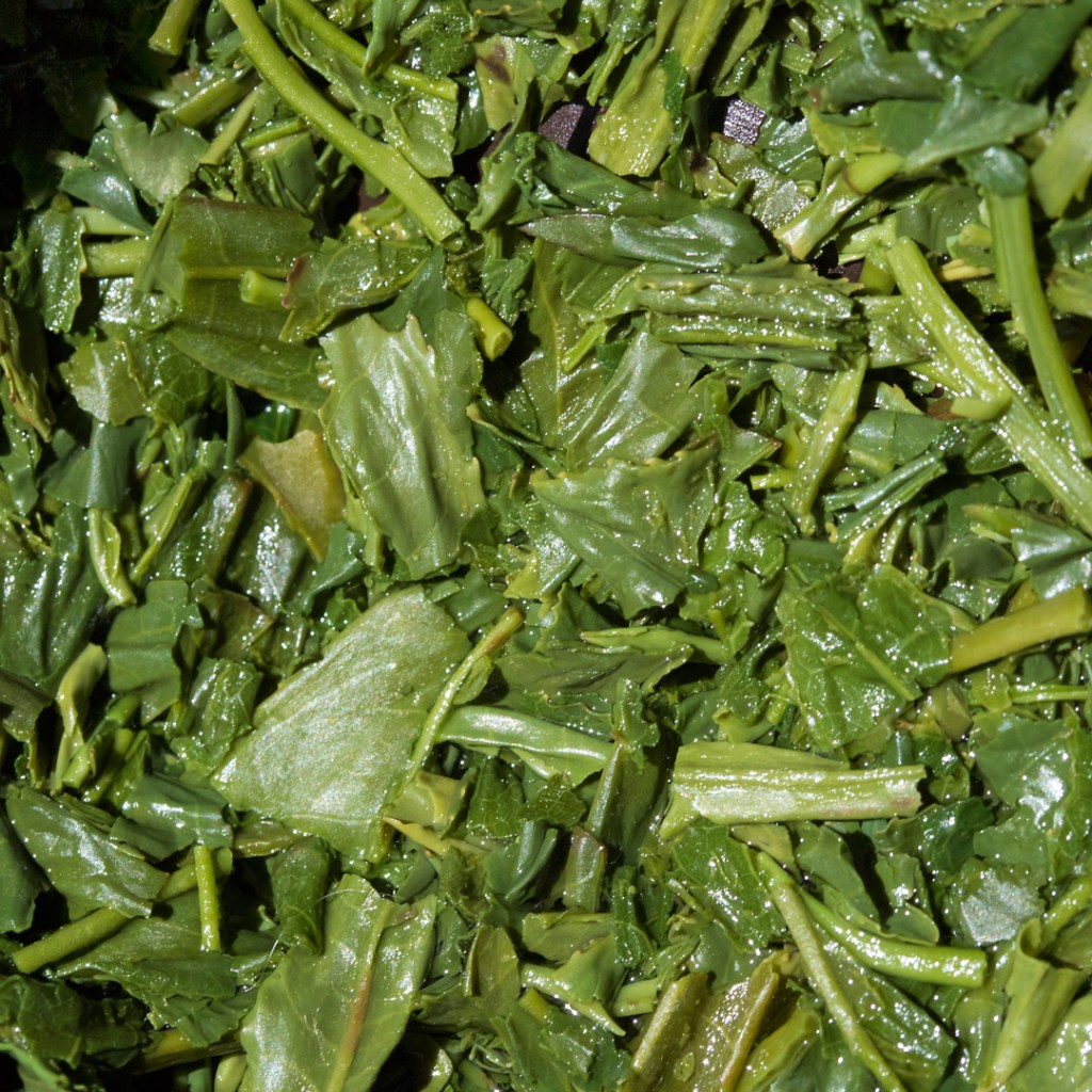 While all senchas undergo steaming, Fukamushi sencha is called “deep steamed sencha” for a reason: the leaves undergo up to two or three times more steaming than regular senchas do. This extra steaming alters the flavor and the color, the leaves turning a dark, rich green I normally don’t associate with sencha.