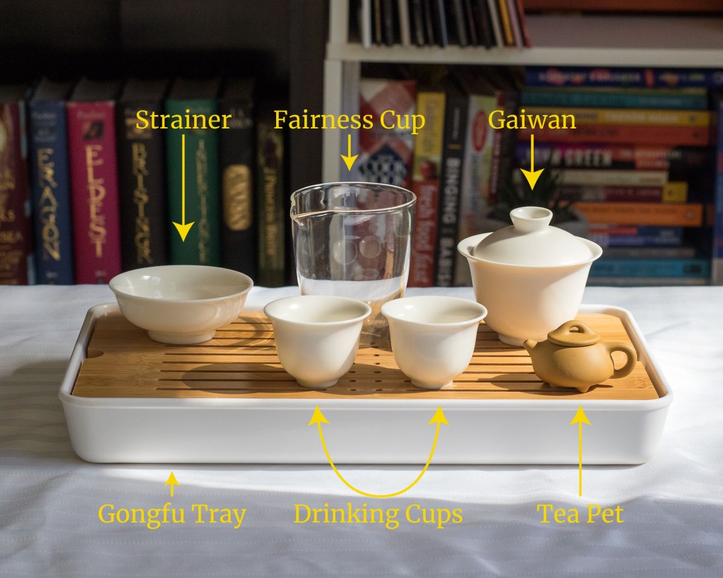 Once you’ve chosen your tea, there are a few items you need for a traditional gongfu cha setup. If you’re a beginner and don’t have money to drop on some new brewing items, have no fear– I’ve provided substitutions for each required item that you can find at home.