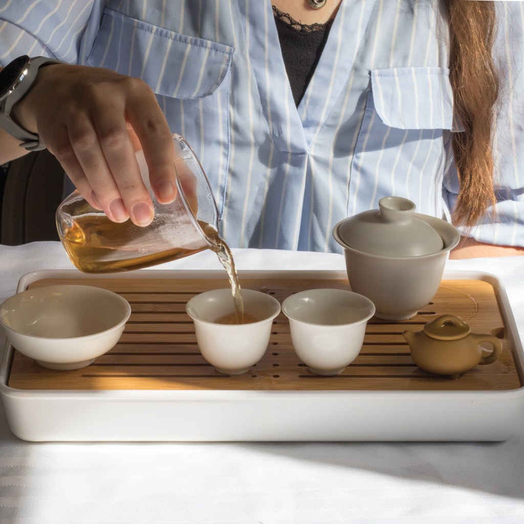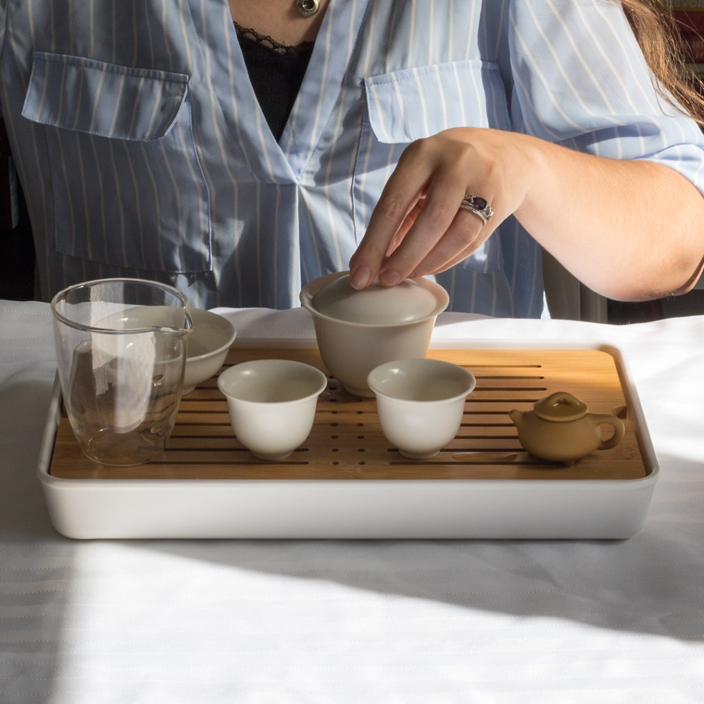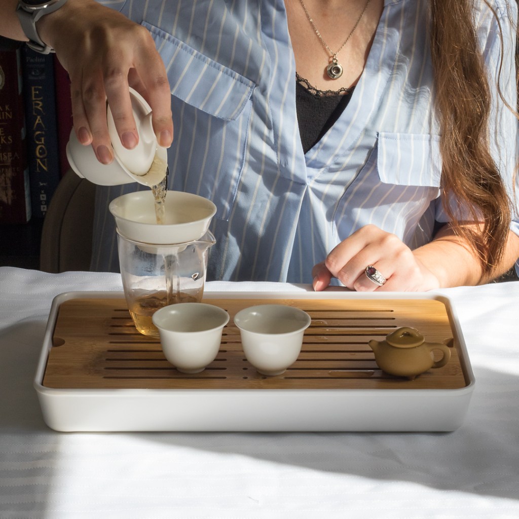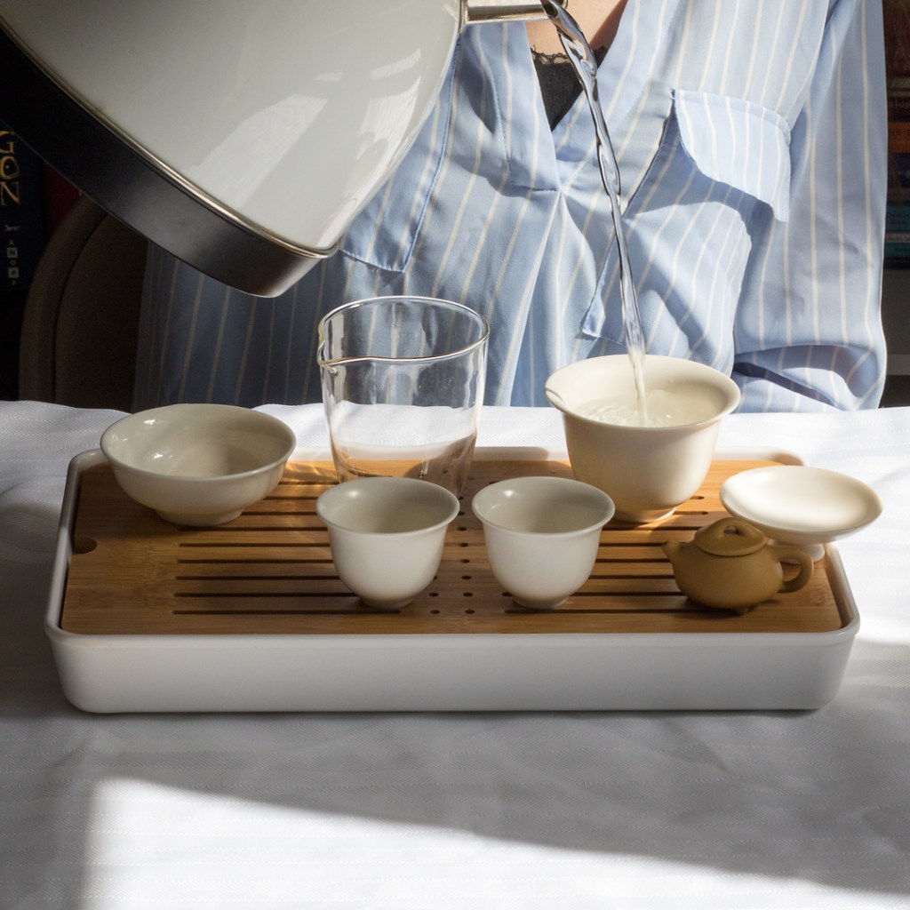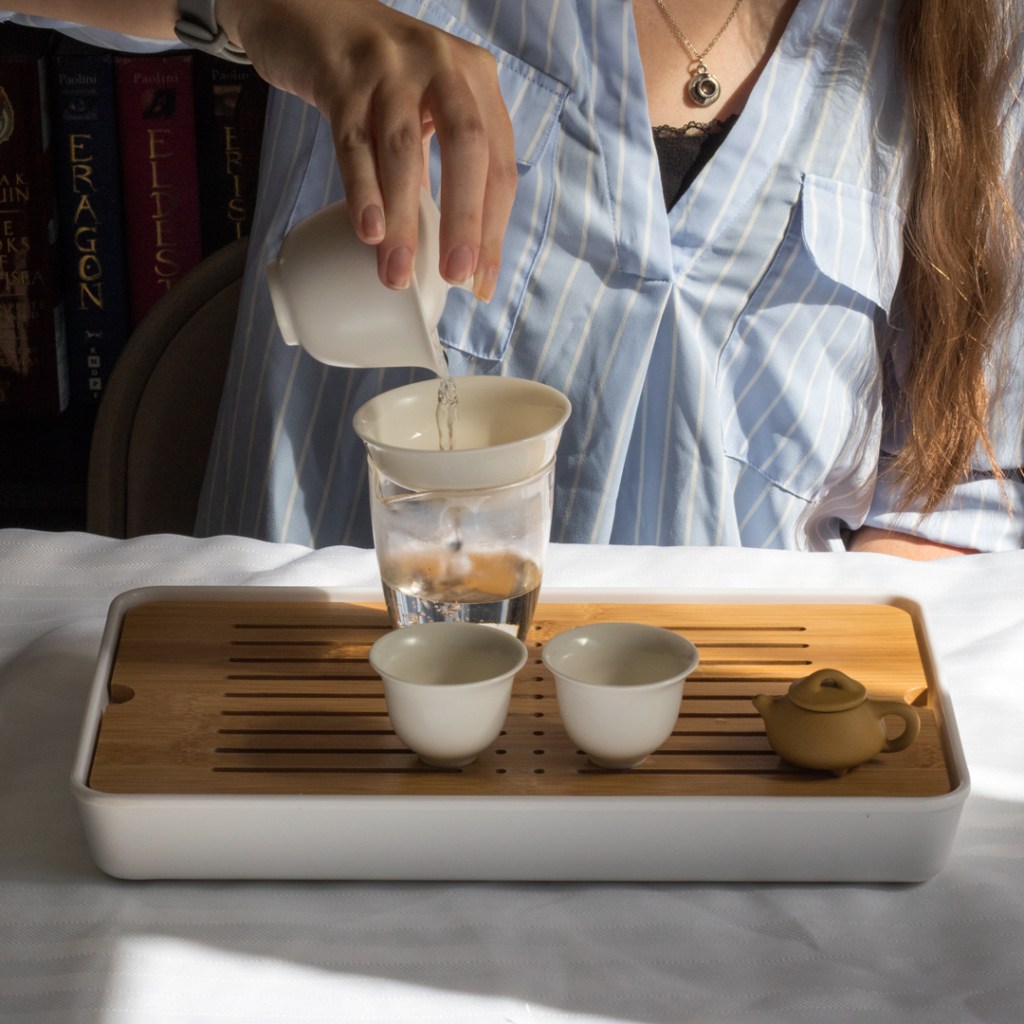 - Gongfu Tray: Gongfu cha, especially when you’re learning, is pretty messy. Gaiwans and teapots don’t always have perfect pours, and you don’t always have great aim. Having a tray, especially one that provides some sort of drainage, keeps you from staining your furniture or constantly cleaning.